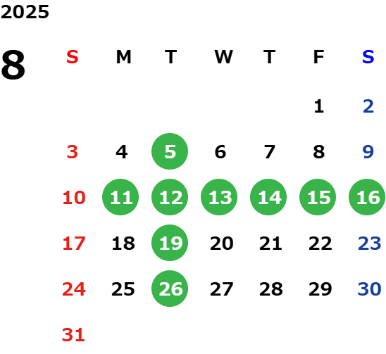 定休日:無休(メンテナンス等で予告なしに使用できない場合がございます。ご了承ください。)